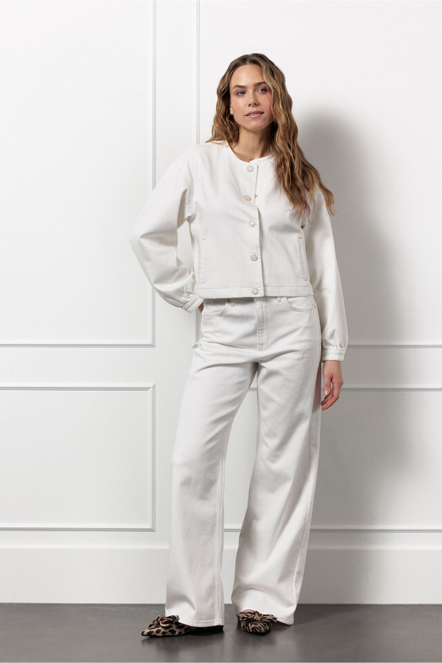 Het Charlot denim jacket van Studio Anneloes is een fris en vrouwelijk jasje met een eigentijdse twist. De witte kleur zorgt voor een lichte, stijlvolle basis, terwijl details zoals parelmoerknopen en pofmouwen zorgen voor een verfijnde uitstraling.