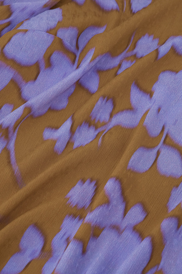 De Kylie blurry top van Studio Anneloes is een echte blikvanger met een vrouwelijke uitstraling. De grafische bloemenprint combineert het frisse Lavender Blue met het warme Caramel en geeft dit item een unieke, eigentijdse look. Dankzij de flatterende V-hals, de kleine pofmouw en de elastieken manchetten heeft de top een moderne en elegante pasvorm die je zowel casual als chic kunt dragen.