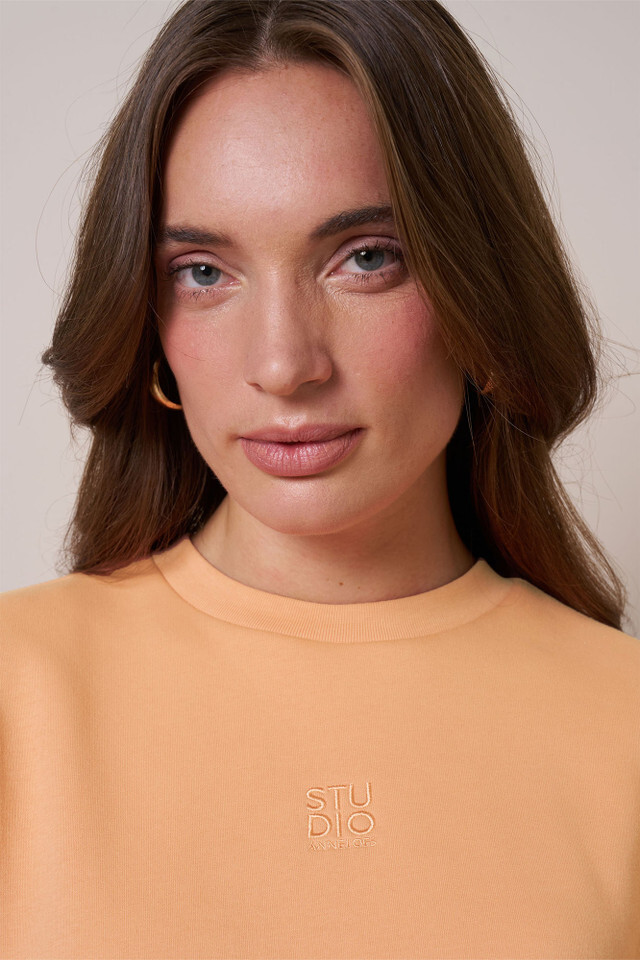 De Pleuni Studio Sweater van Studio Anneloes in Peachy is een comfortabele essential met een moderne twist. De zachte perzik kleur geeft je look een frisse, vrouwelijke uitstraling, terwijl de relaxed fit zorgt voor ultiem draagcomfort. Deze sweater is gemaakt van een katoen mix met een brushed binnenkant die heerlijk zacht aanvoelt op de huid. De siernaden op de mouwen en het subtiele geborduurde logo op de borst geven dit item een verfijnde uitstraling.