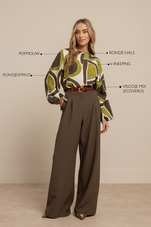 De Apple Circle top van Studio Anneloes is een artistieke blikvanger met een speelse twist. De opvallende print in tinten als Dark Lime, Kit, New Army en Black geeft het item karakter, terwijl de luchtige viscose mix zorgt voor een comfortabel gevoel. Een uitgesproken top met een vrouwelijke pasvorm en een unieke halslijn.