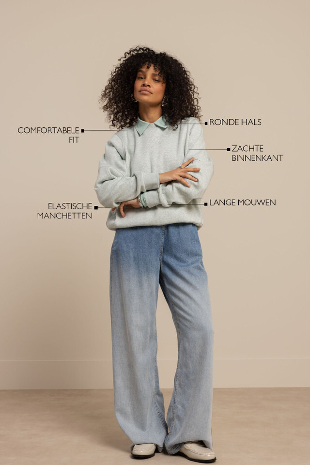 De Pleuni studio sweater in de kleur Light Sage Green geef je jouw look een frisse update. Deze zachte trui met brushed binnenkant en comfortabele fit is een moderne basic die je keer op keer uit de kast haalt. De zachte groentint zorgt voor een rustige uitstraling met een eigentijdse twist.