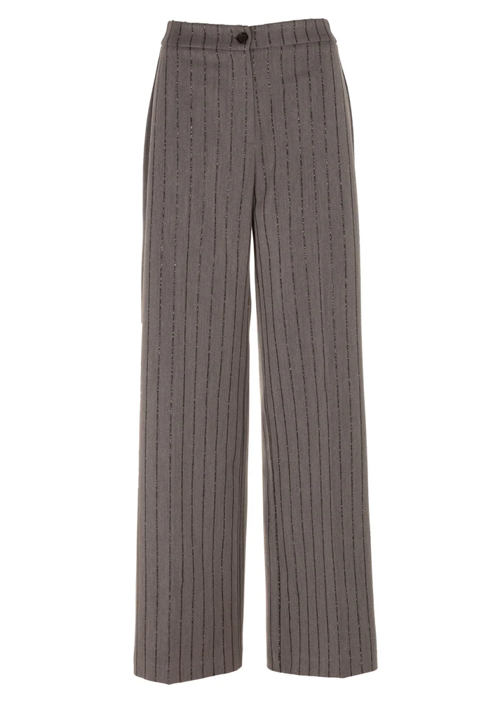 Een elegante pantalon met een moderne, comfortabele pasvorm.De broek is gemaakt van een luxe tailored kwaliteit met een subtiele glitterstreep, wat zorgt voor een verfijnde en eigentijdse uitstraling. De rechte pijpen creëren een tijdloos silhouet, terwijl het elastiek aan de achterzijde van de tailleband extra draagcomfort biedt. Perfect te combineren met de bijpassende blazer voor een stijlvolle, gecoördineerde look.