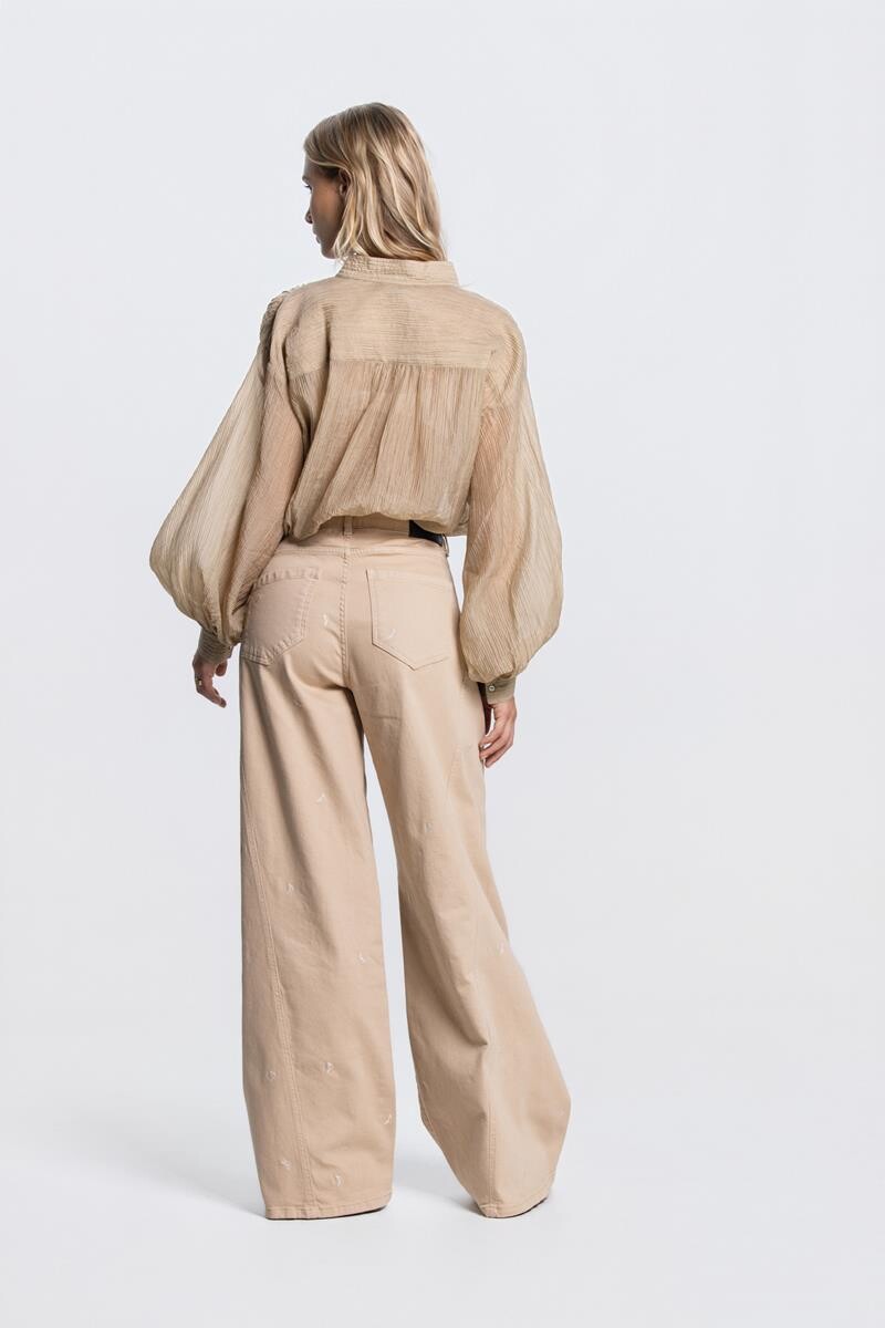 De Nadine blouse in zand is een wijdvallend model met een elegant, licht doorschijnend effect. De lage V-hals en subtiele pofmouwen bij de manchetten geven de blouse een vrouwelijk en verfijnd karakter. Perfect voor zowel casual als chic combineren.